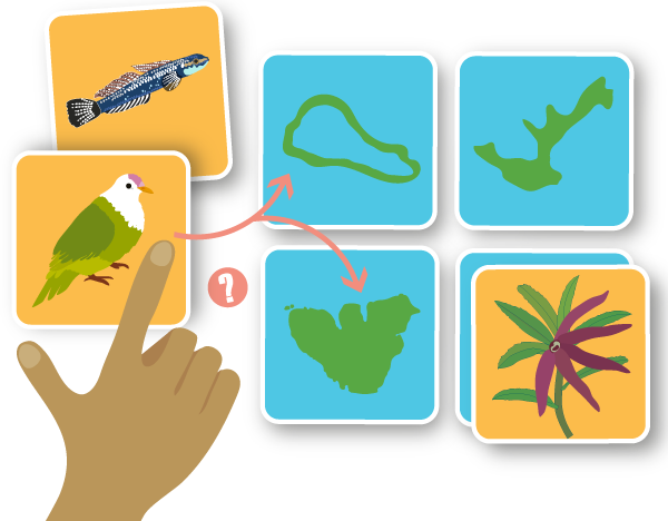 A l’aide des indices que tu trouveras dans les fiches de présentation, trouve les îles où habitent les espèces et ramène-les chez elles.